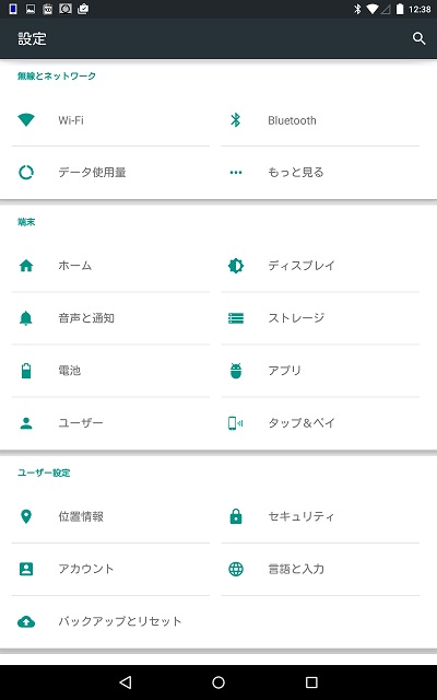 Android 5.0 では 7 インチタブレット以上になると設定画面が 2 カラムになります。