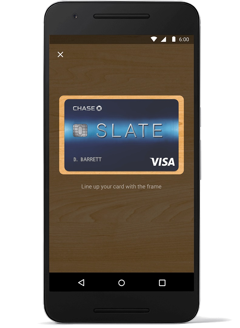 クレジットカードの登録は、「Android Pay」アプリを起動し、“カードを追加” をタッチします。Android のカメラが起動するので、フレームにクレジットカードをきっちりと合わせます。すると自動でカード番号を読みこんでくれます。