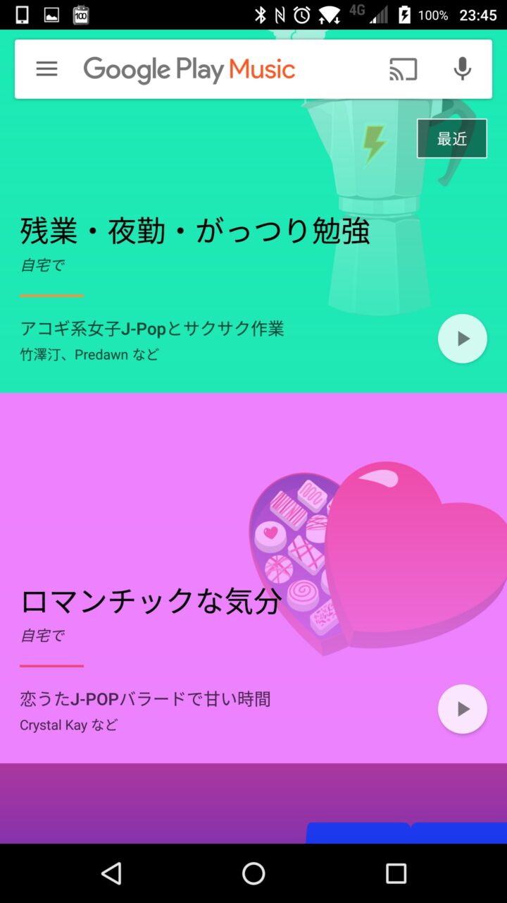 この機能は特に難しい設定などは不要で、自動でオススメの楽曲集を表示してくれます。これまでも気分やシチュエーションに合わせた楽曲を選んで再生できる機能はありましたが、新しい「Google Play Music」ではより直感的に気分にあった楽曲を再生できるようになりました。