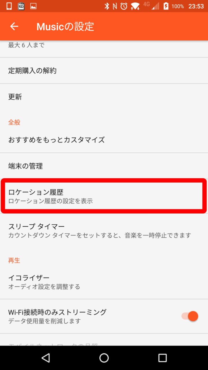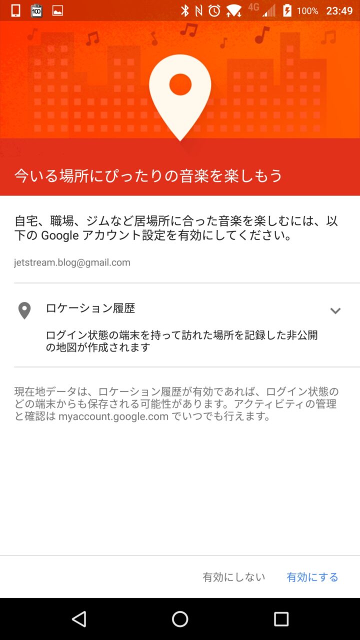 ちなみにこの機能はスマートフォンの “ロケーション履歴” を元に自動表示してくれます。リニューアルされた「Google Play Music」の設定から “ロケーション履歴” を オフ にすることもできるようになっていますが、特に オフ にする必要はないかと思います。