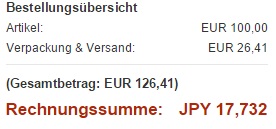 本体価格は VAT 抜き €100 で、日本への送料と申告納税分を国内を含めた輸入総額は、本日の為替で 17,732 円となります。