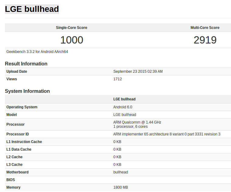 「Nexus 5X」のコードネームとして伝えられている「Bullhead」の名前を持つ「LGE Bullhead」が、ベンチマークサイト GeekBench に登場しました。