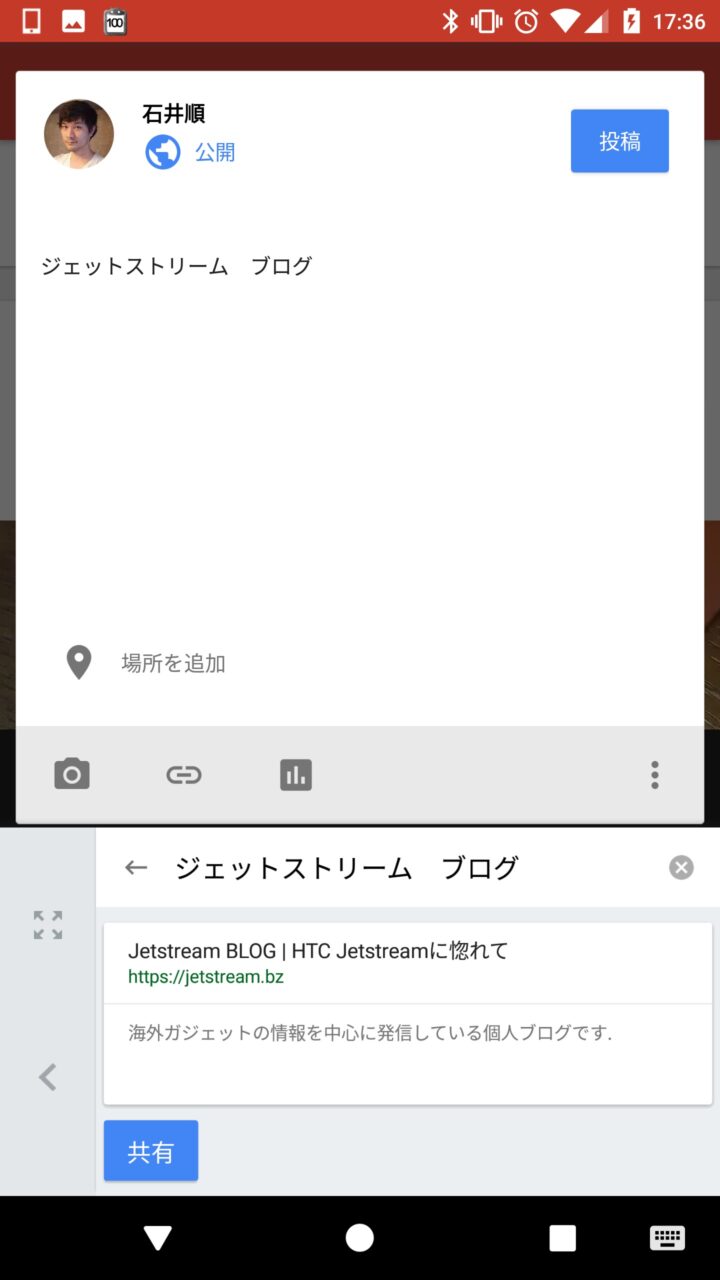後は検索結果を “共有” ボタンから貼り付けるだけです。