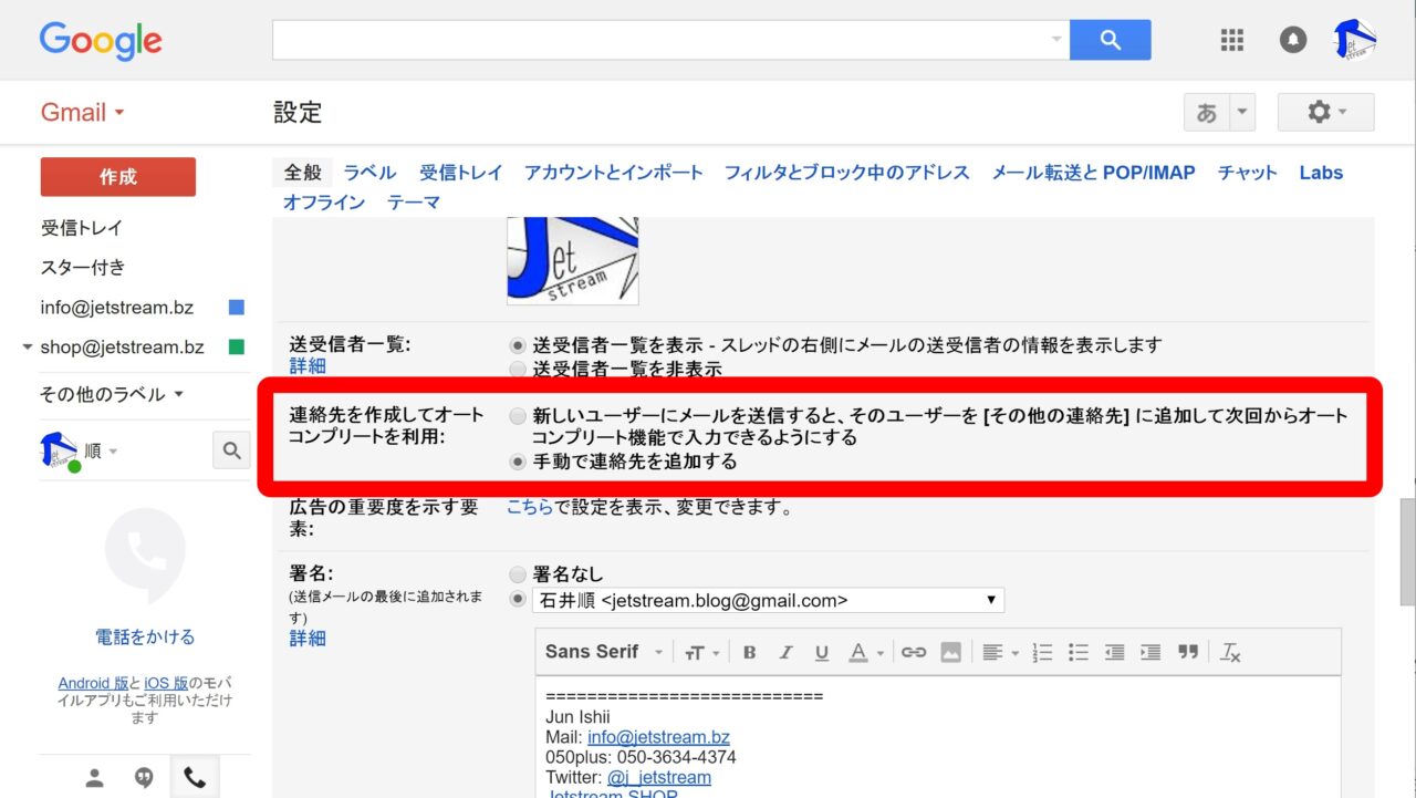 以上、「Gmail」で送信した新しいユーザーの連絡先が自動で登録されるのを停止する方法のご紹介でした。