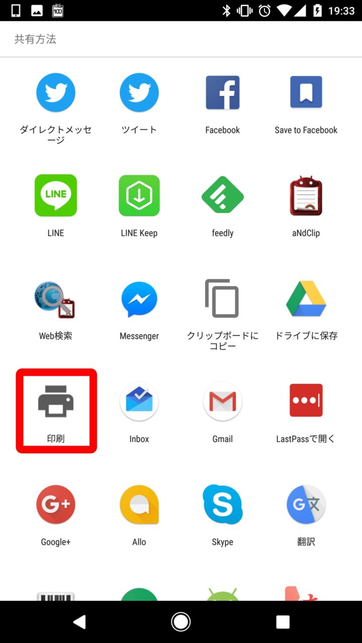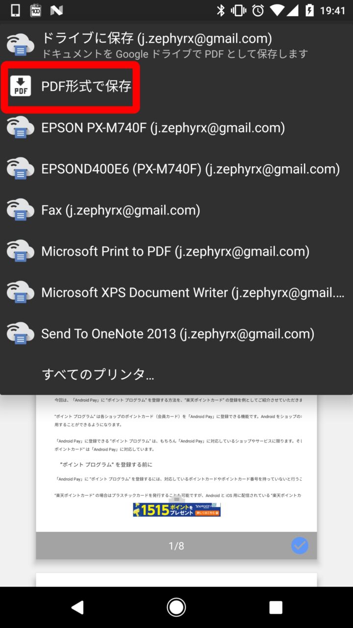 PDF 形式での保存は Android の印刷メニューから行うので少し複雑です。是非覚えておいてください。