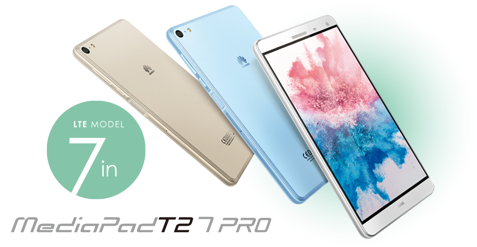 Huawei Japan は 6 月 16 日、10 インチタブレット「MediaPad T2 10.0Pro」を 6 月 24 日に、7 インチタブレット「MediaPad T2 7.0Pro」を 7 月 8 日に発売することを発表しました。