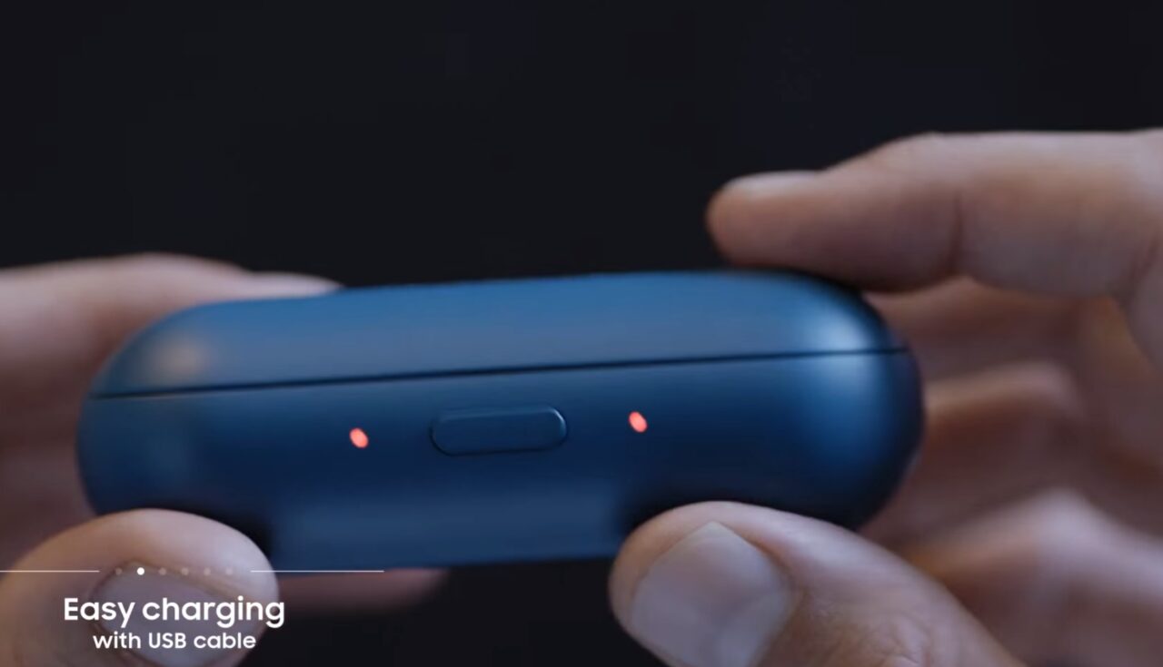 「Gear IconX」はセパレート式のイヤホンとなっているので充電方式などが気になるところだったのですが、どうやら専用の充電ケースに入れて、ケースに micro USB ケーブルを接続することで充電を行う模様です。また「Gear IconX」への音楽転送はケースごとスマートフォンと接続して行うという、一風変わった方式となります。