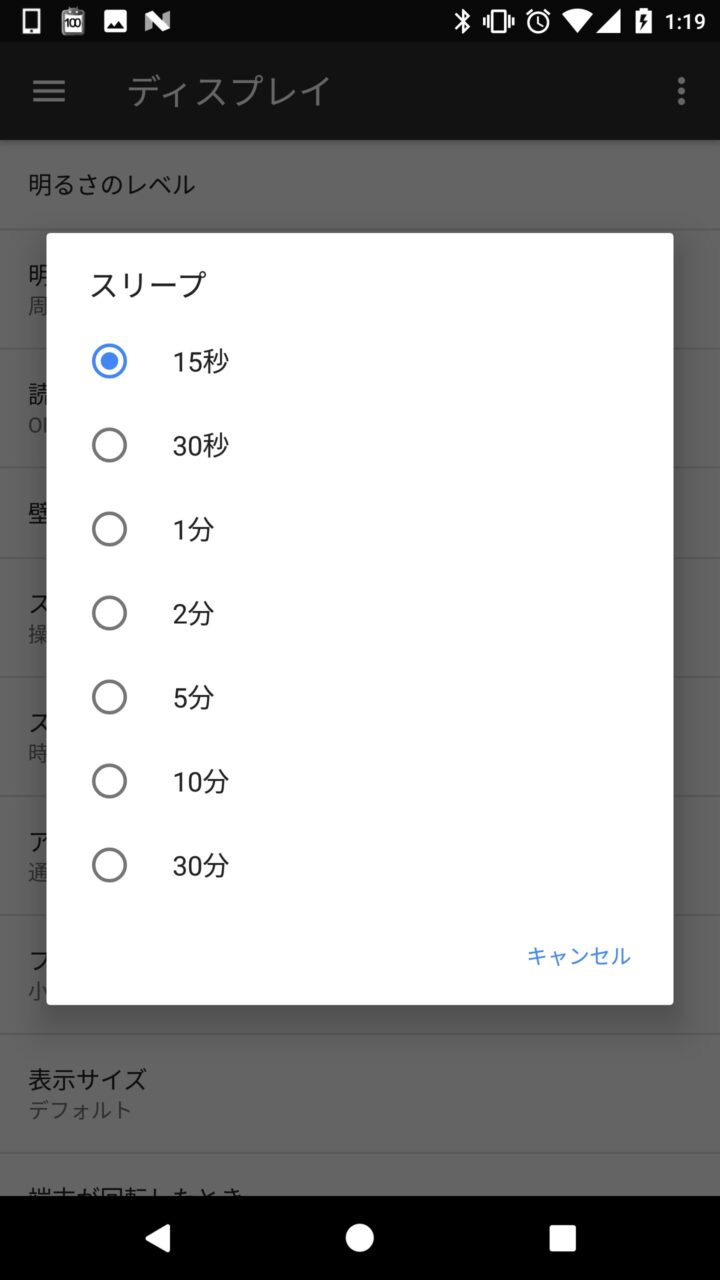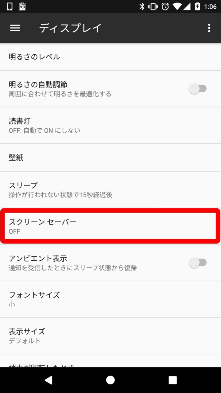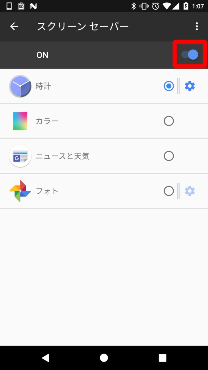 ちなみに “スクリーンセーバー” は電源ボタンを押して強制的に画面をスリープ状態にした時は起動しません。あくまでも Android を放置して画面が自動でスリープに入った時に起動する機能となります。