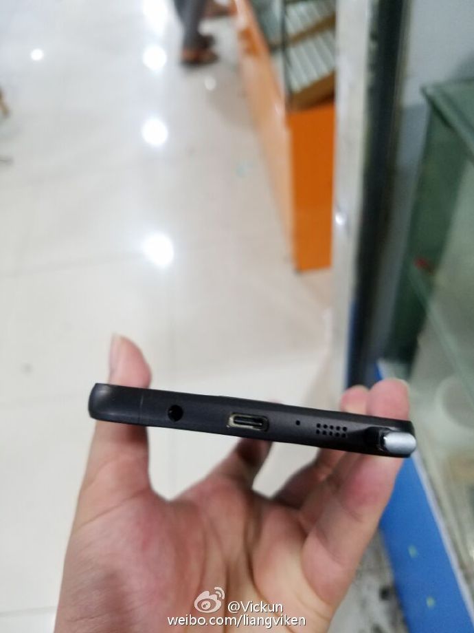 写真では「Galaxy Note7」の起動文字や S-Pen、そして USB Type-C コネクタをはっきりと確認することができるのですが、それと同時にエッジスクリーンではないストレートタイプのディスプレイとなっていることも確認することができます。
