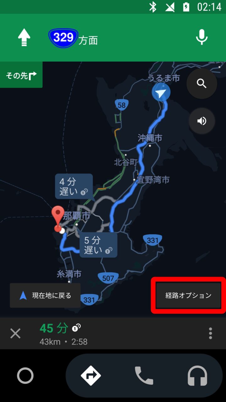 「Android Auto」の “経路オプション”