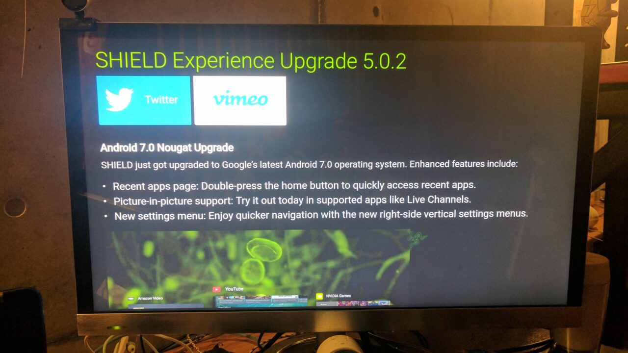 本日 NVIDIA が 2015 年に発売した Android TV コンソール「NVIDIA SHIELD TV(2015)」に Android 7.0 Nougat へのアップデート配信され、私手持ちの(Pro)にも降ってきました。ソフトウェアは v5.2 です。そしてアップデートを行ってみました。