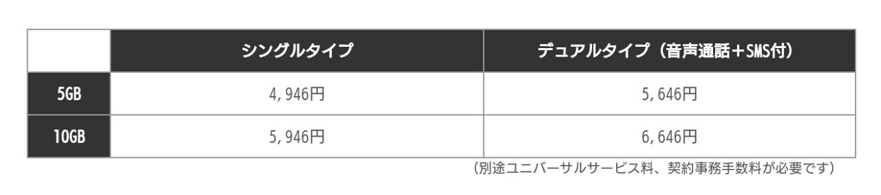 「+SIM」はデータ通信プラン(5 / 10 GB)と音声通話プランが用意されます。「mineo」よりもシンプルなプラン体型です。