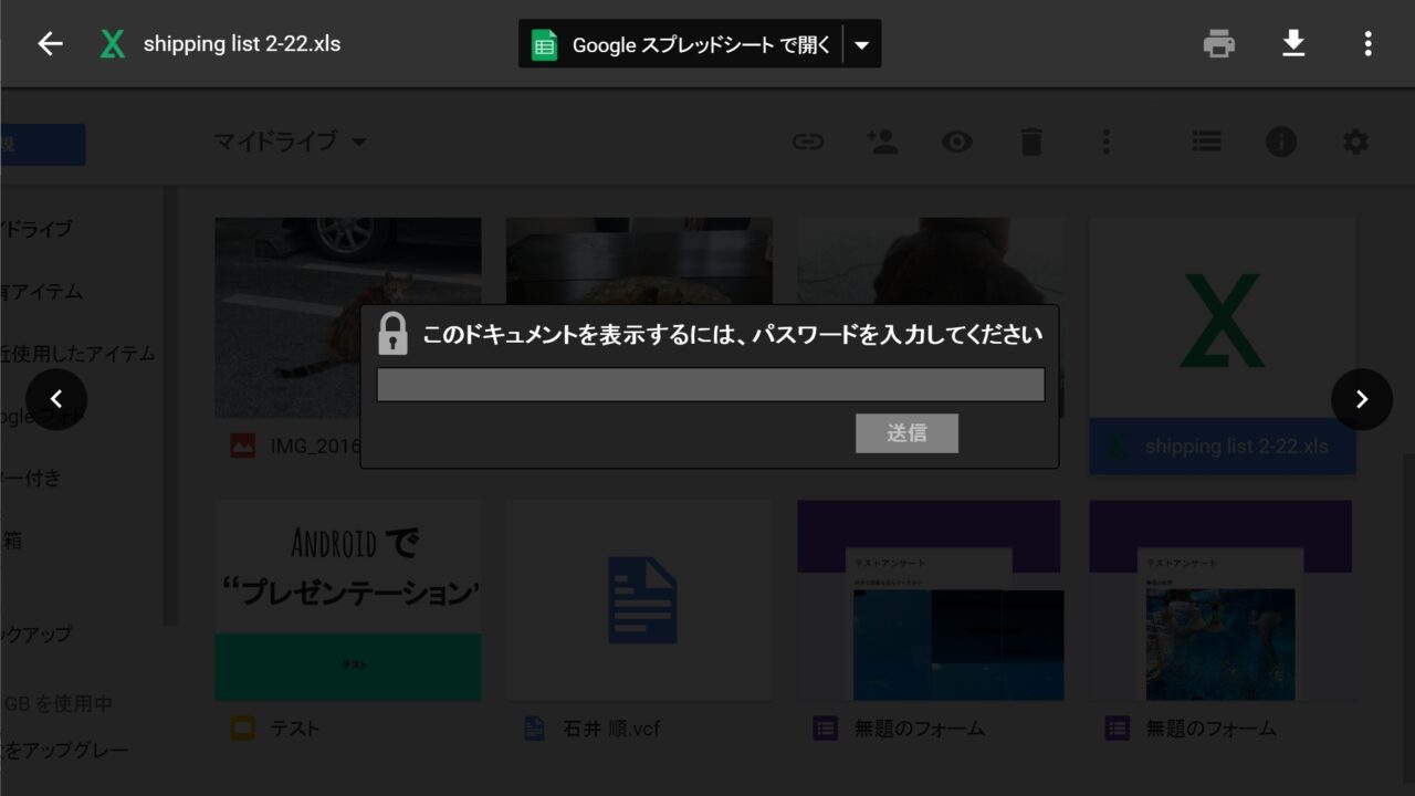 ちなみにスマートフォン版「Google ドライブ」では 2017 年 2 月末現在はパスワードロックがかかっている Office ファイルのプレビューを行うことはできません。こちらもご注意ください。