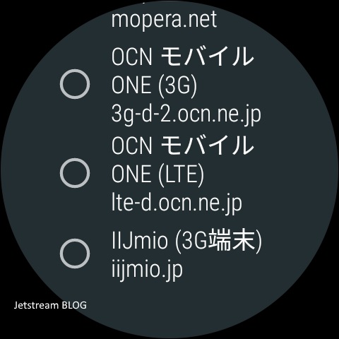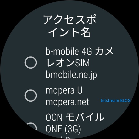 そしてプリセットされている国内の APN は以下の通り。WCDMA に対応している SIM を「LG Watch Sport」に挿すと表示されます。