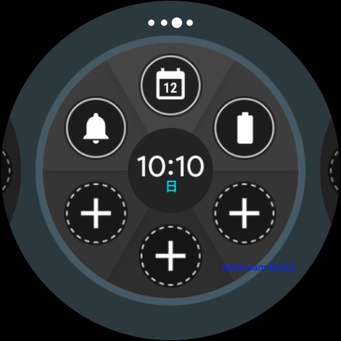 Android Wear 2.0 ではウォッチフェイス画面にアプリやショートカットを配置する機能が実装されているのですが、この場合は複数のアプリがショートカットに対応しています。ただしアプリ側がウォッチフェイスへの配置に対応していないと割り当てることができず、“ハードウェアボタンのカスタマイズ” で割り当てられるアプリよりも今のところ数は少な目です。