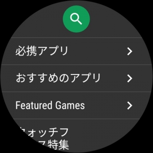 Android Wear 2.0 における Google Play は Android と同じくアプリドロワーにあります。タッチすれば Android の Google Play を簡易的にしたような UI のページが表示されます。