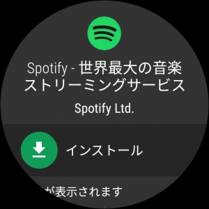 実際のアプリインストールはアプリのページを開いてインストールをタッチするだけです。すぐにインストールが開始されます。今回は「Spotify」をインストールしました。