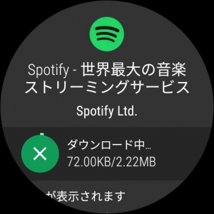 「Google Play Music」の Android Wear 2.0 版アプリでは完全にスタンドアロンアプリとして楽曲のストリーミング再生だけでなくダウンロードまで行うことができるのですが、「Spotify」はまだそこまでに到達していない様子です。