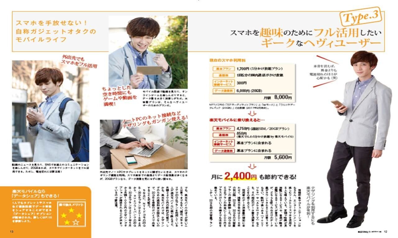 「格安スマホなう 楽天モバイル編」は読んで字のごとく楽天モバイルのプランや使い方に特化した書籍です。ただしその書風をファッション雑誌風にアレンジし、節約上手なモテ男を育成するための How to 本となっています。