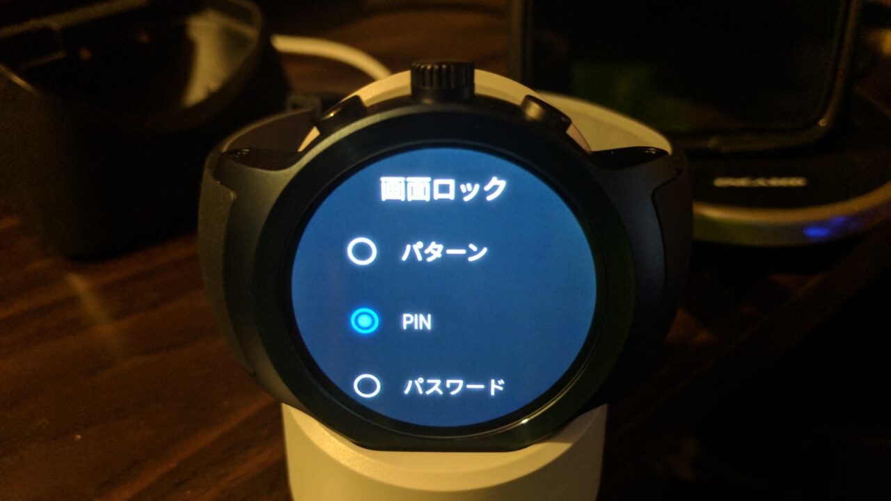 画面ロックは Android Wear 1.5 以下のバージョンではパターンロックのみとなりますが、Android Wear 2.0 以降ではパターンロックに加えて PIN ロックとパスワードロックを選択して設定できるようになっています。