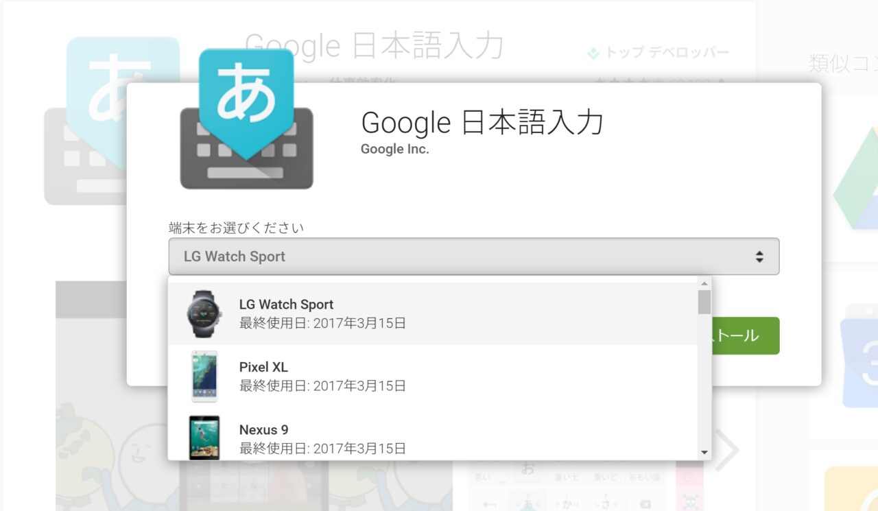 実際に Android Wear 2.0 を搭載している「LG Watch Sport」に「Google 日本語入力」アプリを入れてみました。アプリはデスクトップ版の Google Play からもインストールできます。