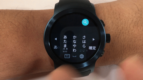 Android Wear 2.0 では日本語入力を行うにはこれまで手書き入力しかできなかったのでかなり入力に時間がかかっていたのですが、フリックで入力になったことで入力にかかる時間がかなり短縮されるようになりました。ただ画面が小さいので入力には若干の慣れが必要。