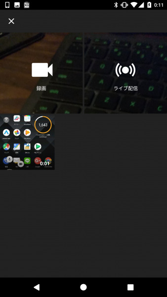 ちなみチャンネル登録者数が 1,000 を超えていない場合は以下の通りです。“ライブ配信” が表示されず、通常の録画モードでの撮影のみとなります。