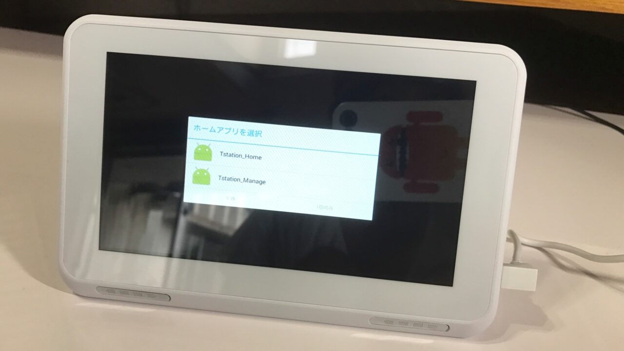 「T ステーション」の電源を入れて起動するといきなりこの画面。中身は Android ですね。この次の画面では Wi-Fi の設定を行いました。