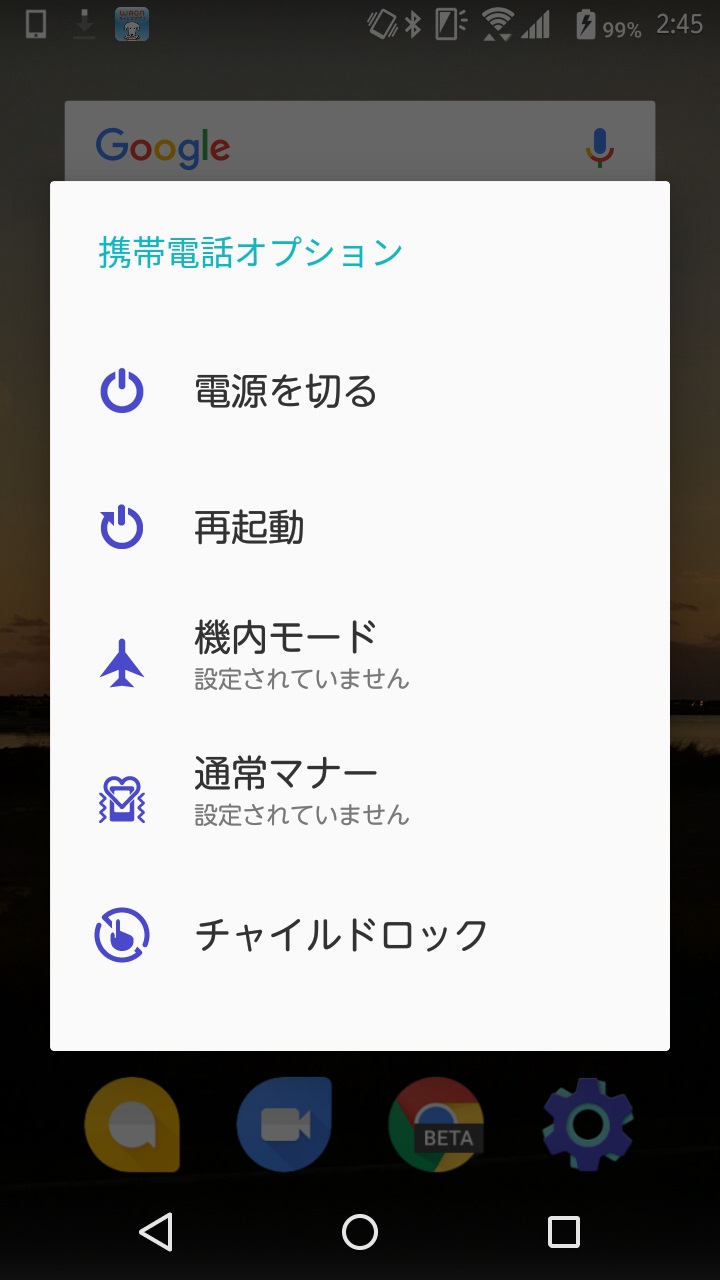 再度飛行機アイコンのタッチすると機内モードが オフになり、モバイルネットワーク、Wi-Fi、Bluetooth が オン に切り替わります。このほか機内モード設定は電源ボタン長押しでメニューが表示される機種もあります。