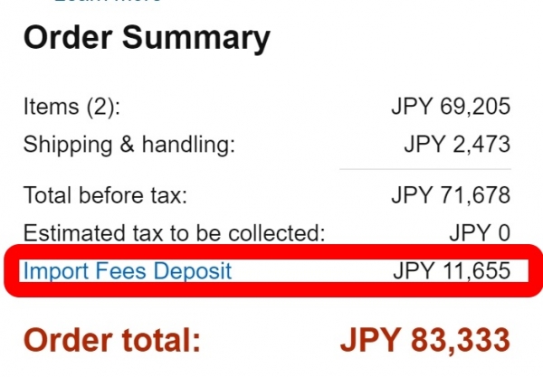 Amazon.com から「Galaxy Tab S3(SM-T820)」を輸入する場合の総額は以下の通りで 82,500 円前後となりますが、なぜか申告納税などが含まれる “Import Fees Deposit” がかなり高く見積もられているので割高です。