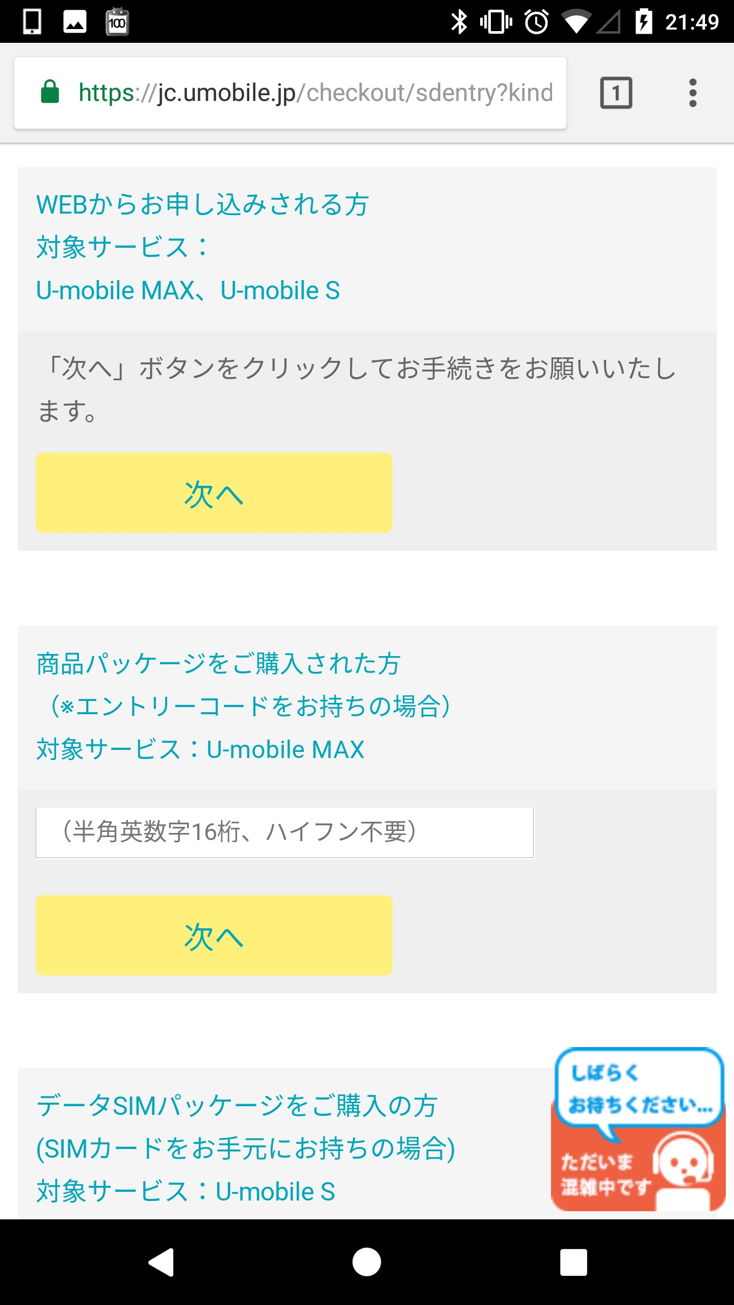U-mobile:お申し込み形態選択