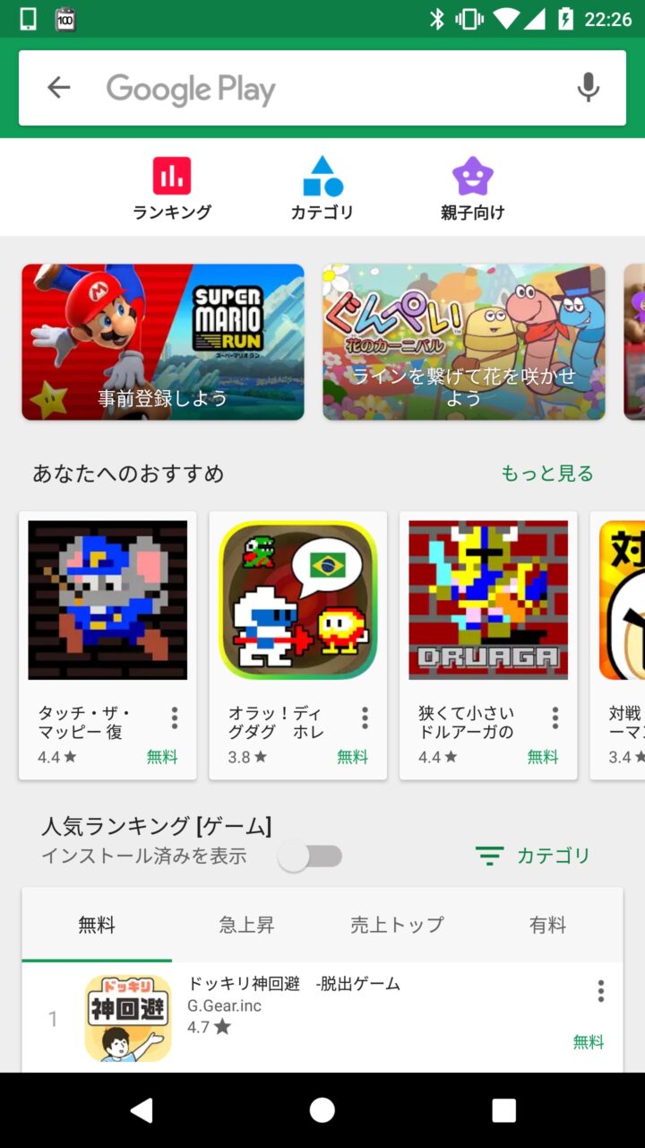 「Google Play ゲーム」でゲーム以外の画面も録画するにはまず、「Google Play ゲーム」に対応した何かしらのゲームアプリをインストールしておいてください。アプリは無料のアプリで構いません。