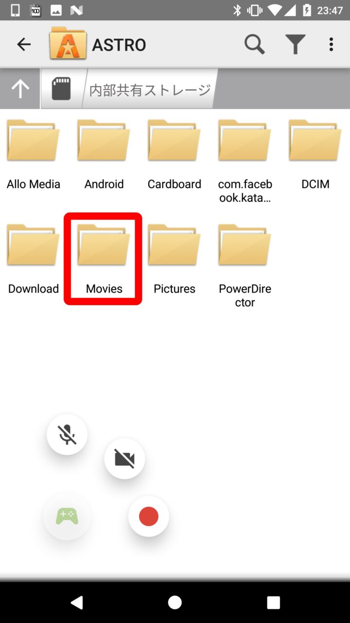 録画された動画は内部ストレージの “Movies” フォルダの中にある “Screencasts” フォルダに保存されます。