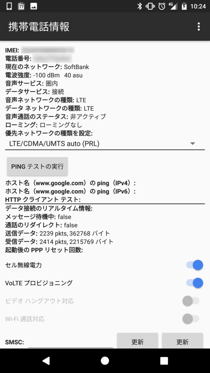 そして以下が “携帯電話情報” の内容。“現在のネットワーク” に SoftBank の記載があります。