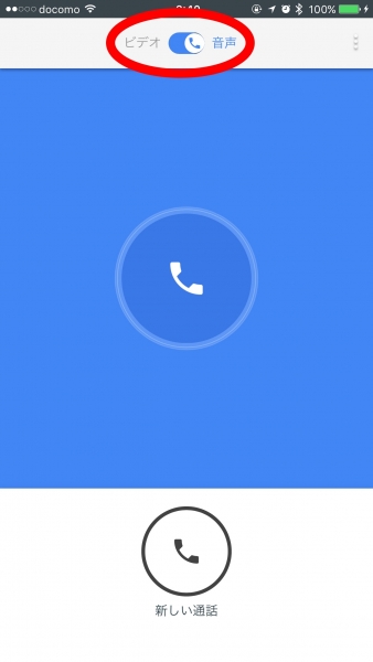 v9.0 のアップデートした iOS 版「Google Duo」ではアプリを起動すると画面上部に “ビデオ” ⇄ “音声” のスイッチが表示され、これを切り替えることでビデオ通話と音声通話を切り替えることができるようになっています。