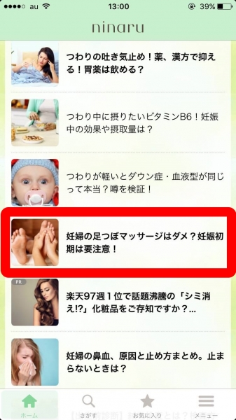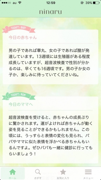 友達夫婦が活用していたアプリは「ninaru」というアプリです。アプリをインストールして簡単な設定を行うだけで、毎日赤ちゃんの状況や妊婦さんへのアドバイス、そしてその他の妊婦さんや赤ちゃん、出産に関わる記事が配信されるそうです。また広告は表示されるものの全て無料で利用することができる点も Good。