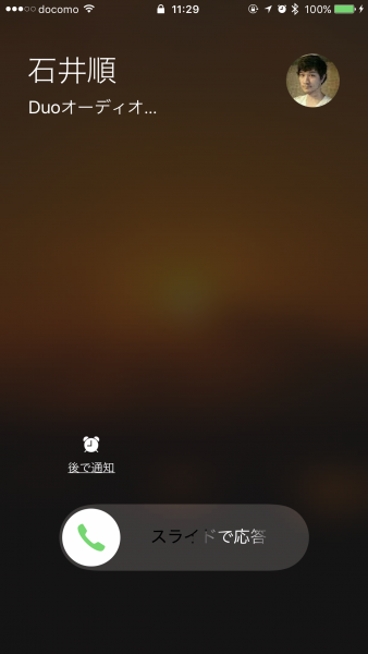 実際に「Google Duo」で音声のみの通話を相手にかけてみたら、通常の音声通話のひょうな着信表示となりました。使い勝手は結構よさそうです。ネットワークの安定性にもよるものの音質もかなり良かったので、有力な音声コミュニケーションツールになる可能性も高いですね。