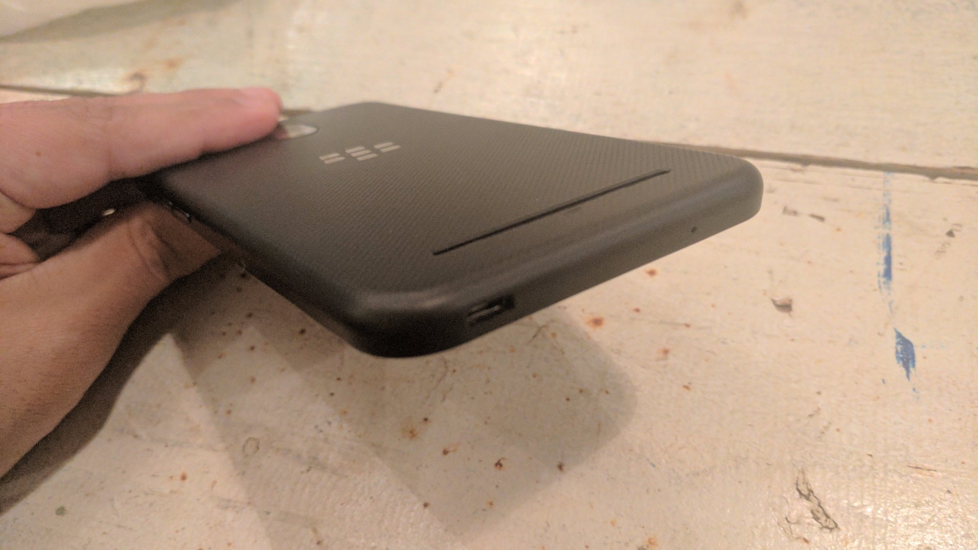 本体サイズは同じ 5.5 インチの「BlackBerry DTEK60」とほぼ同じですが「BlackBerry Aurora」の方が左右合わせて 5mm 程度幅が広めです。また本体の厚みは明らかに「BlackBerry Aurora」が厚め。