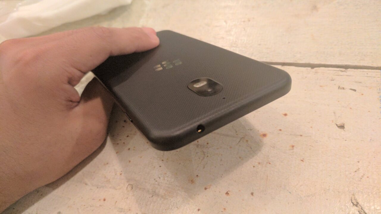 「BlackBerry Aurora」のデザインは良くも悪くもエントリースマートフォンならではです。プラスチック製のバックパネルが取り外しできる仕様となっています。ックパネルを取りはずすと micro SIM スロット × 2、micro SD スロット × 1 が出てきます。