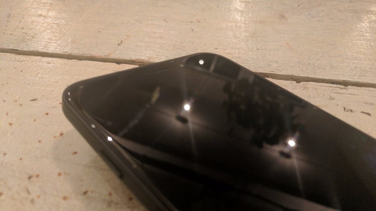 「BlackBerry Aurora」のディスプレイは 5.5 インチと大型ながら HD ディスプレイなので解像度は低めです。日々 WQHD ディスプレイの「DTEK60」や「Pixel XL」を見ていれば当たり前ですね。(写真ではわかりにくいですが)