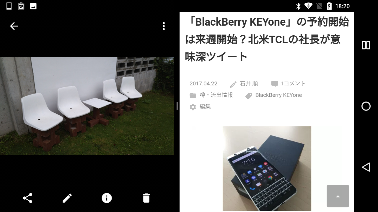 また Android 7.0 を初期搭載しているので、OS ベースで搭載しているマルチウィンドウももちろん利用可能。この辺も「BlackBerry Aurora」の最高なところです。