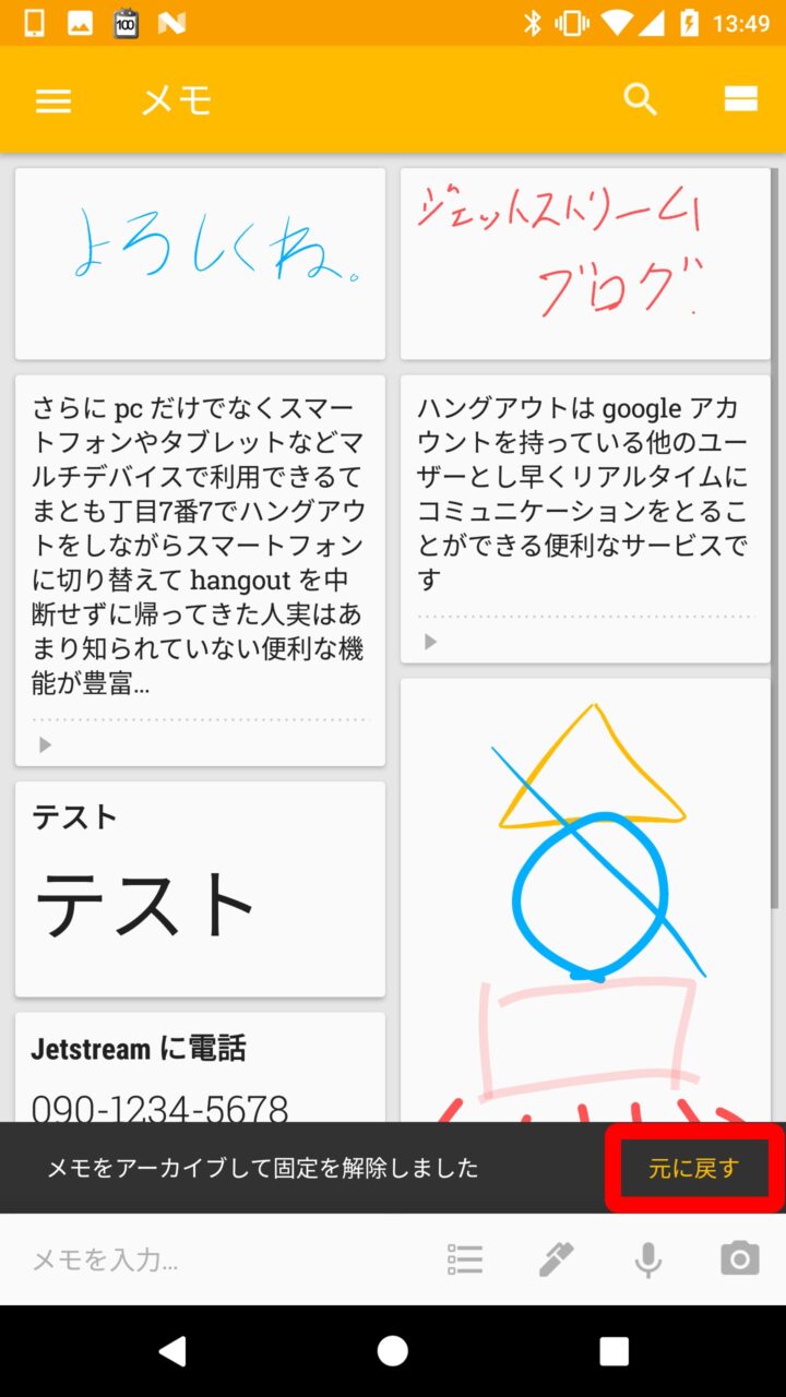 もし誤ってアーカイブにしてしまった場合でも一定時間内であればすぐに元に戻すことができます。