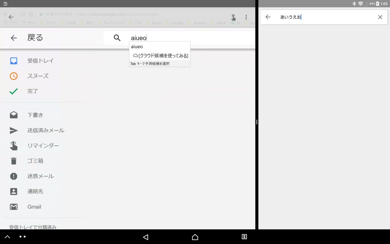 しかし Bluetooth キーボード(有線キーボードも?)を利用する場合はどうやらダイレクトに文字が転送される仕様となるようで、なぜかデスクトップ側の文字入力が日本語になっていても、Android に接続したキーボードで打った文字がダイレクトにデスクトップ側に飛び、全てアルファベットになってしまう模様。そのために「Xperia Z4 Tablet」+「BKB50」のコンビで「Chrome リモートデスクトップ」を利用してデスクトップ側に向けて日本語入力しようとしたら、強制的にアルファベットになってしまいました。