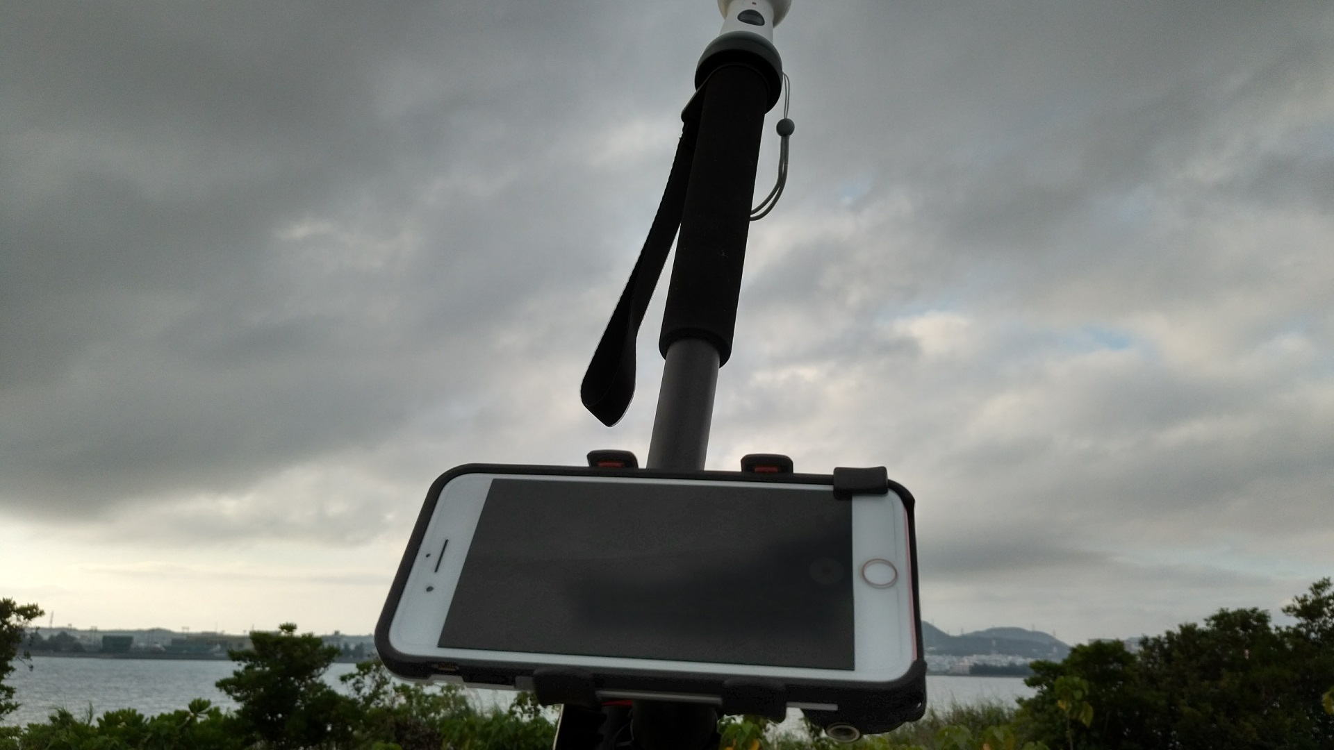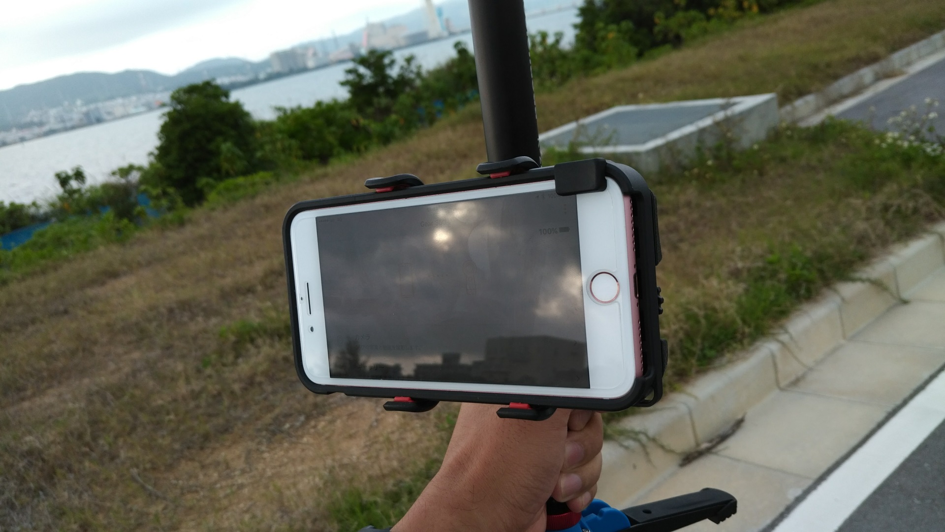 このためにモノポッドを購入したわけですが、これだとモノポッドに装着した「Gear 360(2017)」で撮影を行う際は遠隔撮影となり(私の場合は)iPhone で撮影を行うことになるため、左手にモノポッド、右手に iPhone となり両手が塞がってしまいます。