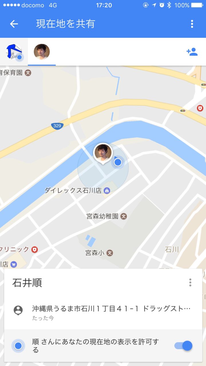 URL を受け取ったユーザーはそれをタッチして開くことで、現在地を共有しているユーザーの位置が「Google マップ」上にアイコンで表示されます。