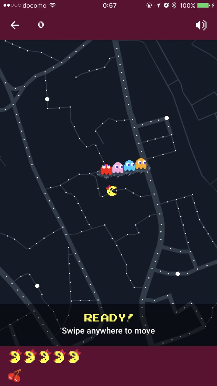 この「Google マップ」の “パックマン” は Android 版アプリと iPhone 版アプリでは若干の違いがあり、Android 版アプリはあらかじめ指定された都市をフィールドとして遊ぶことができる一方で、iPhone 版アプリは好きなマップをフィールとして遊ぶことができるようになっています。つまり iPhone 版アプリの方がオリジナリティあふれるフィールドで遊ぶことができるということです。