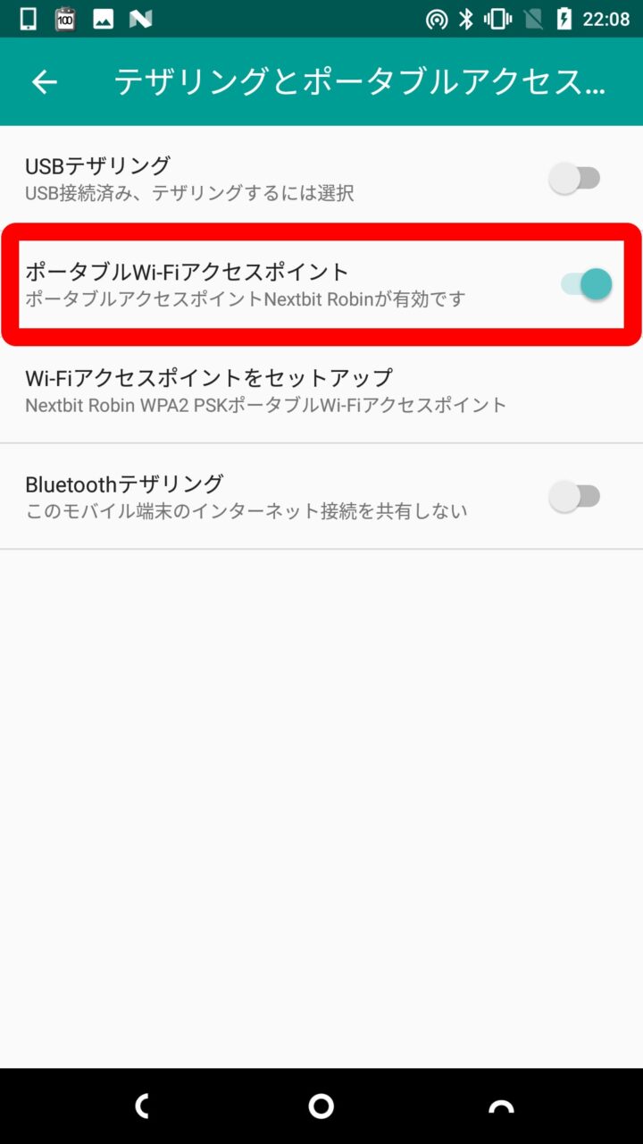 このほかテザリングは Wi-Fi の電波を Android から飛ばすことになるため、テザリング中は Android の Wi-Fi 通信を利用することはできなくなります。また Android が発熱しやすくもなるので、あまり長時間のテザリングはオススメできません。