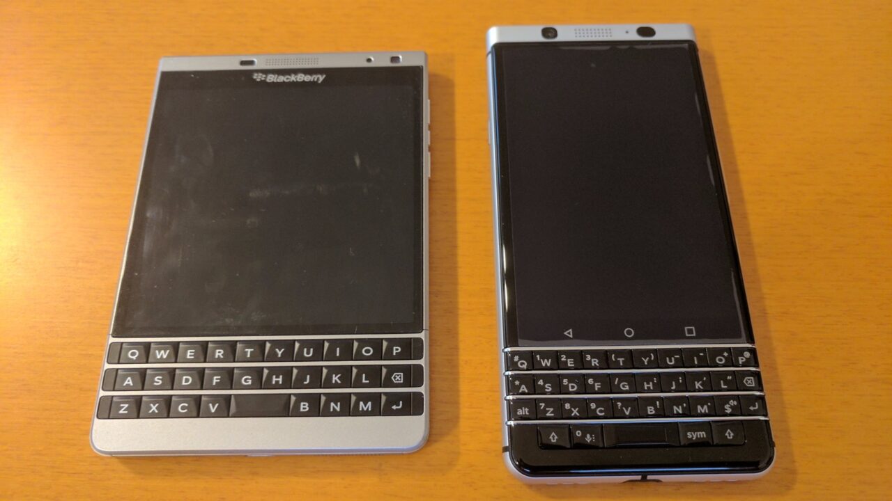 持たせてもらう前にまず、手持ちの「BlackBerry Passport Silver Edition」と並べて比較してみました。