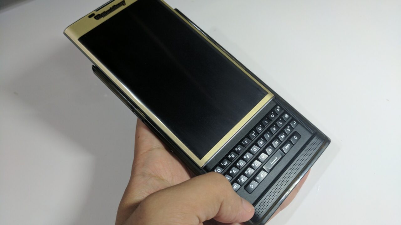 生の「BlackBerry KEYone」を持たせてもらってまず感じたのは、その素晴らしい持ちやすさです。なんとも手にしっくりと吸い付く感覚。