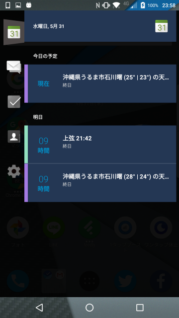 で、実際に何が利用できるのかというと、「カレンダー」「BlackBerry Hub」「BlackBerry タスク」「連絡先(お気に入り / 履歴)」の新着を表示したり、それらのアプリに素早くアクセスすることができます。